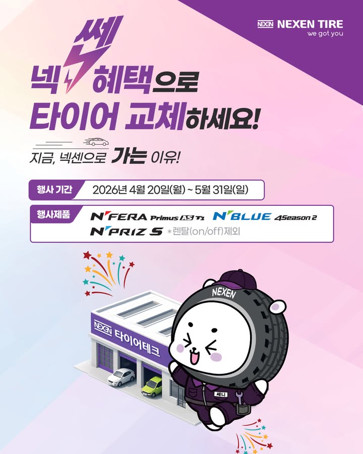 이벤트 진행, 상품 발송 및 마케팅 활동(전화, SMS 발송 등)을 위해 넥센타이어가 지정한 사업자에 이름, 연락처를 제공하며, 상품 발송 및 이벤트 종료 3년 후, 파기합니다. 제3자 제공에 대한 동의를 거부할 수 있으며, 이 경우 이벤트 참여가 제한됩니다.